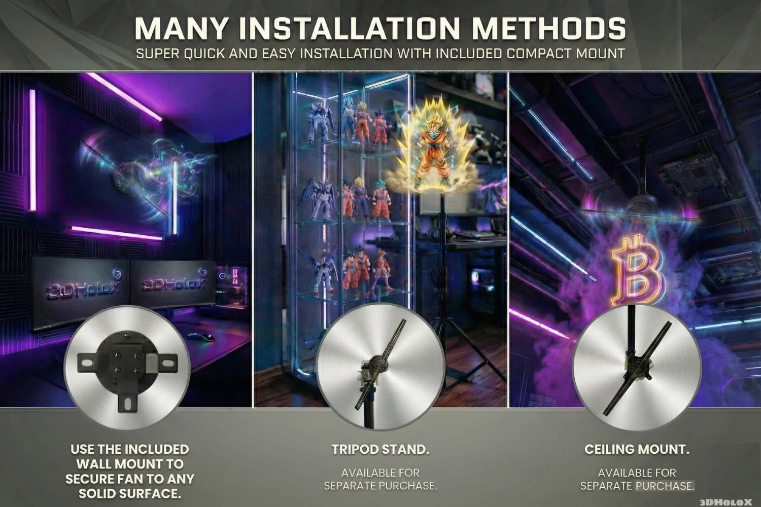 - Tripod & Ceiling: Expandable visibility for events and showrooms (Sold separately).